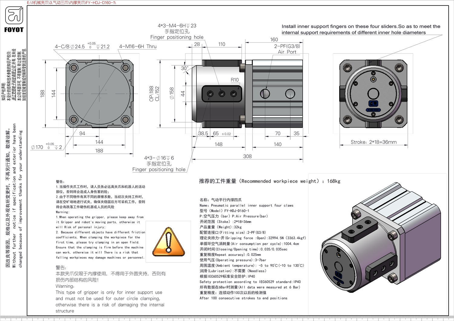 理论夹持力-开(Grippingforce:0pen):32994.5N(3363.4kgf)
