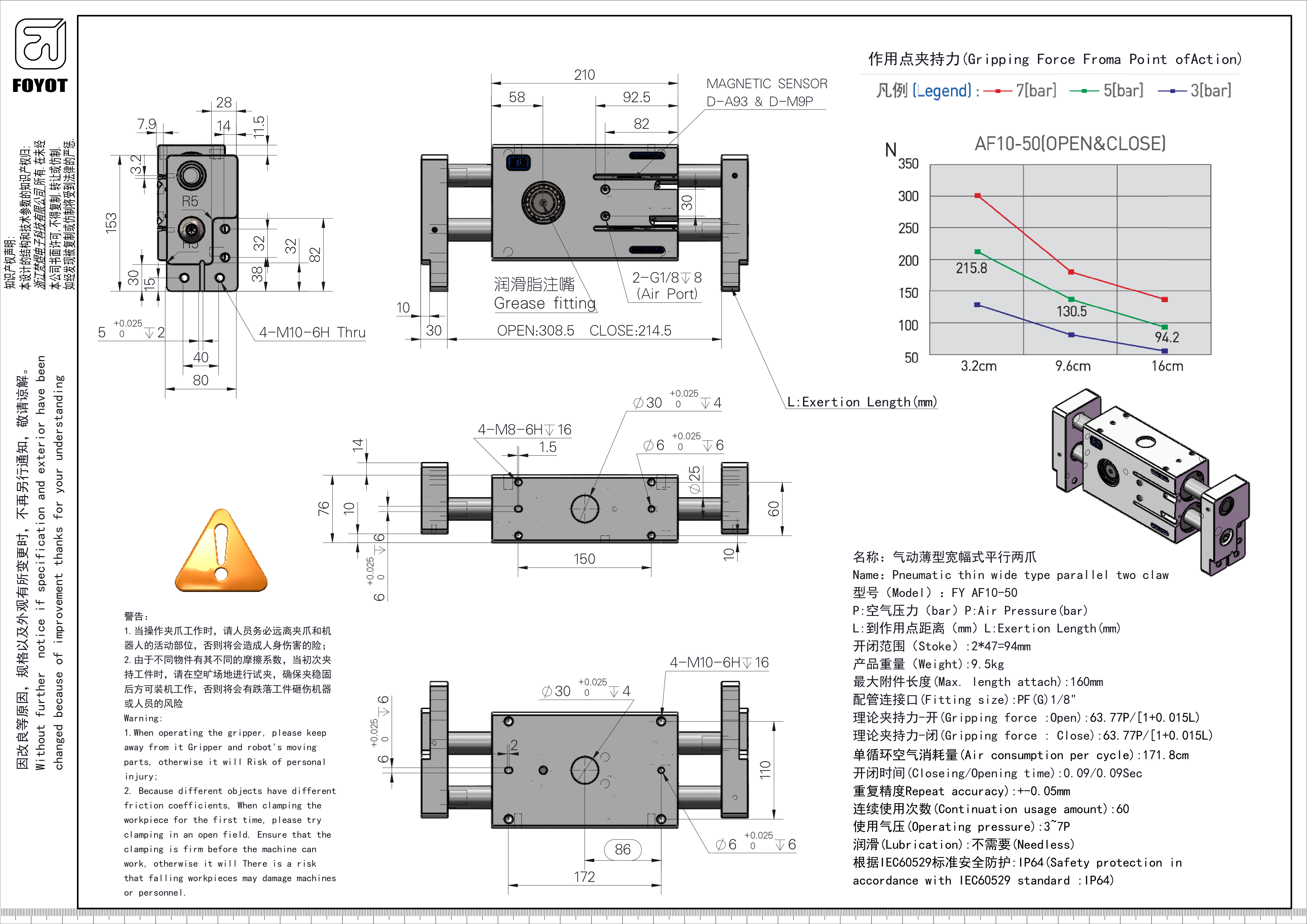 理论夹持力-开(Gripping force:0pen):63.77P/[1+0.015L)