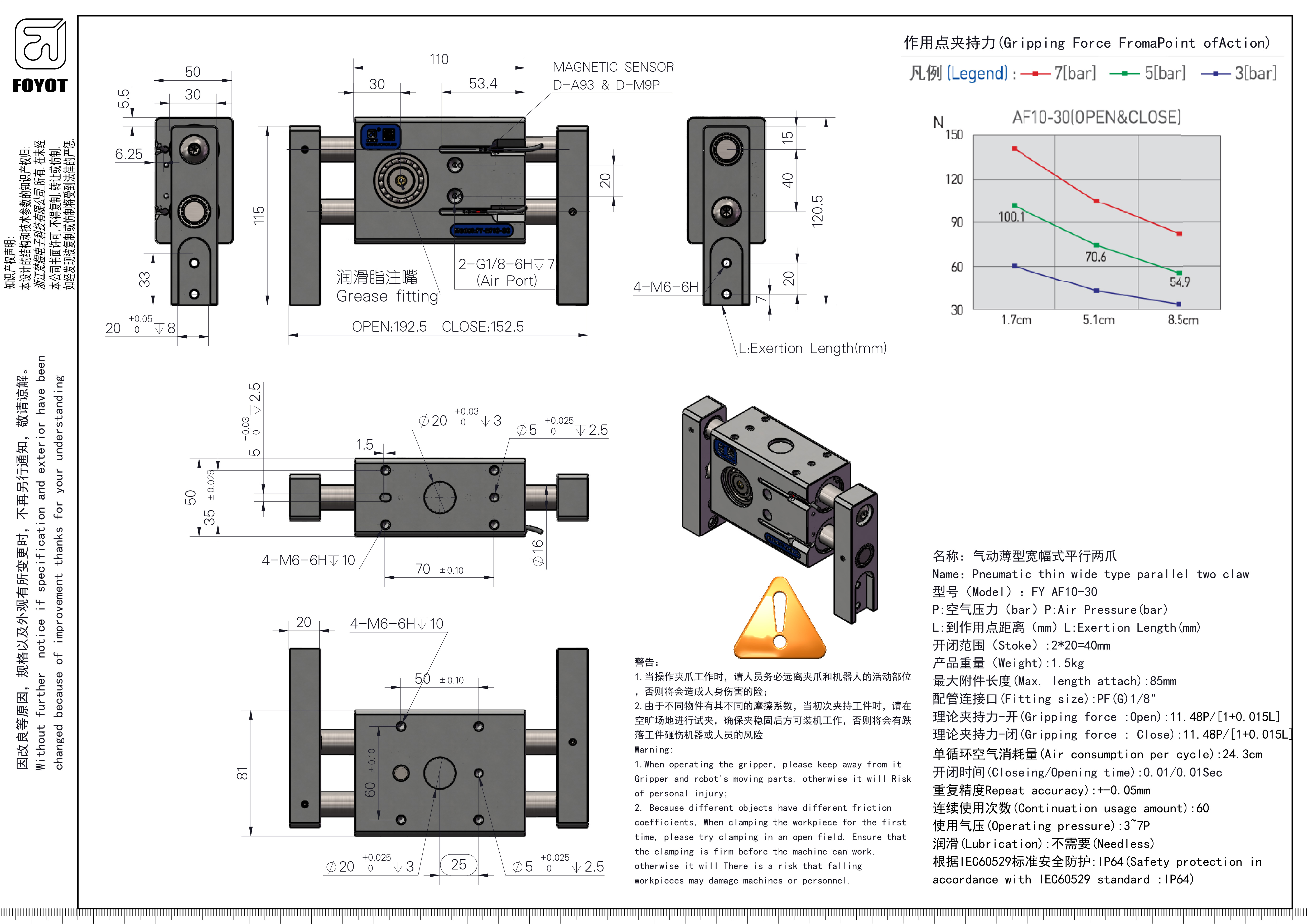 理论夹持力-开(Gripping force:0pen):11.48P/[1+0.015L]